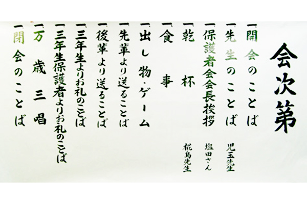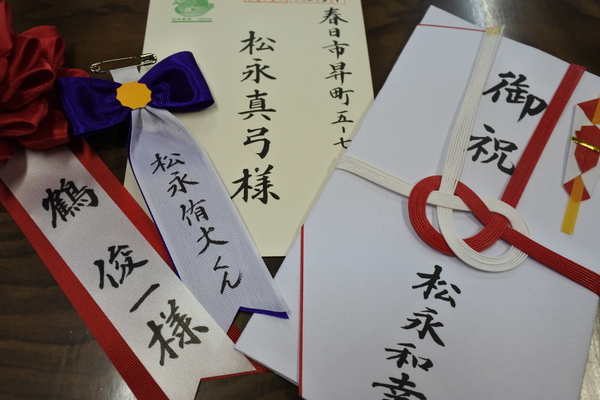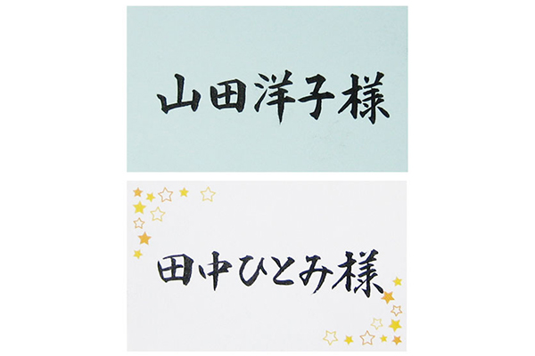 宛名書き毛筆筆耕サービス(葉書・封筒・婚礼招待状など)、賞状・感謝状・卒業証書などの名前入れ、腕章・胸章の製作、その他書き文字の代行全般を承ります。